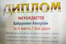 Хайруллин Амирхан занял 2 место в Международном детско – юношеском онлайн-турнире по быстрым шахматам среди мальчиков до 11 лет. Тренер Гарифуллина Ландыш Василовна. Поздравляем!