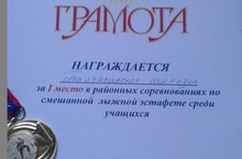Новая победа наших лыжников! Наша команда заняла 1 место в районных соревнованиях по смешанной лыжной эстафете среди учащихся. Молодцы!