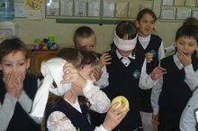 13 октября в 1 А классе впервые прошел "Осенний бал" в стенах гимназии. Мероприятие проходило с загадками на осеннюю тему, конкурсами на отгадывание с закрытыми глазами овощей и фруктов, танцами с фруктами и рисованием "вслепую". Первоклассники остались довольны и праздником, и полученными гостинцами.