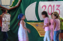 13 августа в гимназии одиннадцатый день лагеря. У нас в лагере «День девочек». С самого утра девочки пришли нарядные, в красивых платьях. Задача девочек сегодня была продемонстрировать прическу, костюм, презентовать себя. А также они участвовали в интересных конкурсах. А мальчики их поддерживали. С праздника ушли довольные и веселые.