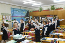 Поэтому каждое утро мы начинаем с утренней зарядки, которую проводят ответственные за спортивную жизнь класса. На уроках же проводим музыкальные физкультминутки. Ведь нашим непоседам нужно активное движение. -