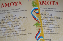 Мәктәбебезнең “Радуга” бию төркеме республика күләмендә уздырылган “Созвездие-Йолдызлык” конкурсының зона этабында уңышлы чыгыш ясаганы өчен министрлыкның дипломы белән бүләкләнде.