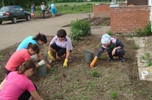 Мәктәп бакчасында, каникуллар башлануга карамастан, кызу эш гөрли.