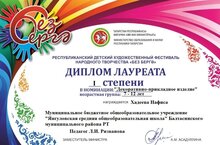 На республиканском фестивале "Без бергә!" дипломом 1 степени, в номинации "Сувениры России", награждена Хадеева Н.