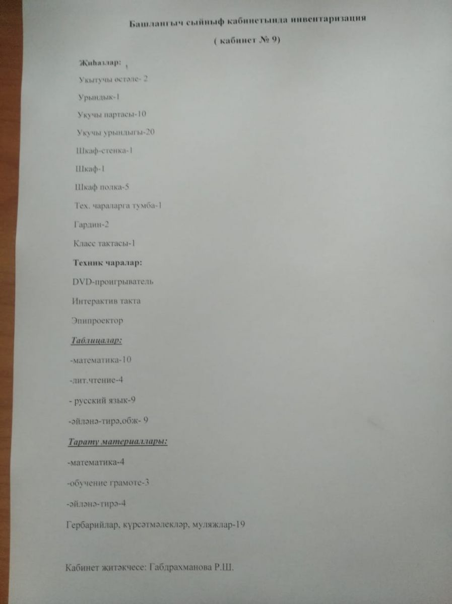 У нас учат: 19 учителей, 1 советник, 4 воспитателя, 1 совместитель/ 20 укытучы, 1 киңәшче, 4 тәрбияче, 1 совместитель