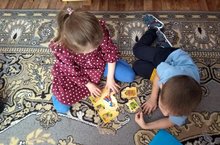 Мәктәпкә әзерлек төркеме балалары яңа өстәл уеннары белән уйныйлар.