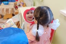 Дети 2 младшей группы играют в игру "Парикмахерская" и знакомятся с профессией парикмахера.