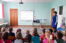 Бүген бакчабызда Лилия Мухамметовна белән чираттагы очрашу булды. Ул балаларга юл йөрү кагыйдәләре турында мультфильмнар аша аңлатып сөйләде, аларның белемнәрен тикшерде. Балаларга "Юный пешеход" памяткаларын бүләк итте.