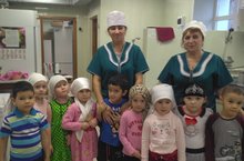 Уртанчылар-зурлар төркеме балалары повар апалары янына кунакка бардылар. Алар ашарга пешеру серләре белән уртаклашалар.