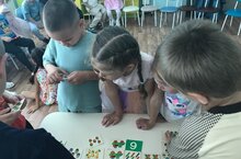 Буген белем коне унаеннан балалар белэн ике командага буленеп коч сынаштык. "Портфельне тутыр", "Сан хэм хэрефне аер", "Дорес сана", "Табышмак эйтэм жавабын тап" дидактик уеннарын уйнадык.