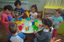 Балалар бик тырышып, бирелеп уйныйлар. Торт бизәү өчен блендер белән тәмле кремнар ясыйлар.