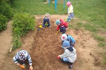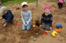 Бүген кечкенәләр төркеменә йөрүче малайларны эәе тыгыз - казылган комны басу иткәннәр - кемдер тырмалый, кемдер сукалый, ә кемдер чәчүгә керешкән....