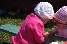Кечкенәләр буласада узара дус, тату уйныйлар балалар. Әнә ничек тырышып орлыкларны бүлешә алар.