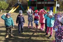 На улице прохладная погода, а ребятишкам старшей группы весело! Они играют в подвижные игры. Дети учатся двигаться в соответствии тектсом слов игры.