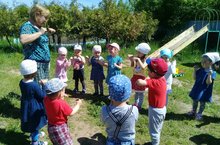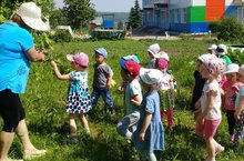 Сегодня дети младшей группы вышли на прогулку по экологической тропе детского сада: познакомились с яблонью, клубникой, смородиной.