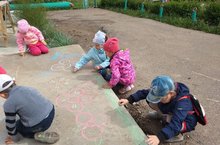 Рисование цветным мелом, развивает у детей мелкую моторику. Они учатся видеть красоту природы, различать цвета и их оттенки.,