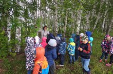 Бүген без бакчабыз янындагы каенлыкка экскурсиягә чыктык. Наҗия Әдһәмовна каен агачы турында шигырь сөйләде.