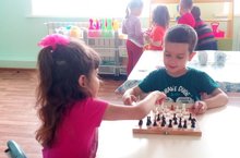Ике дус Риназ белән Гөлсем шахмат уйныйлар.