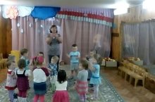 Кечкенәләр төркеме тәрбиячесе Лутфуллина З.Ә. балаларны "Һәрвакыт булсын кояш" җырын өйрәтә. Балаларга бик күңелле булды. Бергә күңелле итеп җырладылар, биеделәр.