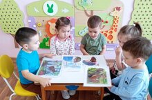 Кече яшьтәгеләрнең икенче төркеме балалары белән " Җәнлекләр урманда яшиләр " темасына әңгәмә уздырдык. Максат: җәнлекләр турында балаларның белемнәрен киңәйттек; җәнлекләрне таный һәм исемнәрен атый белергә өйрәттек. Балаларның диалогик сөйләмен активлаштыру, фикерләрен, мөстәкыйльлекләрен үстерү өстендә эшләдек. Балалар белән хәрәкәтле "Аю һәм балалар", "Җәнлекләр урманда" уеннары оештырдык.