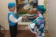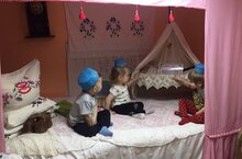 Бакчабызда урнашкан "Балачак иле"музеенда Рахимова Динә,Галимов Аскар,Мухаметова Зәринә Габдулла Тукайның "Кызыклы шәкерт"шигырен ин ценировка ясап рольләргә буленеп балаларга сәнгатьле итеп сөйләп курсәттеләр.Балалар узләренең сәләтләрен оста итеп башкарып балаларның куңелләрендә шатлык хисләре тудырдылар.
