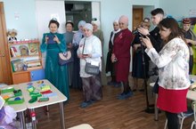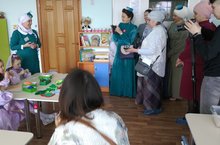"Ак калфак" ижтимагый оешмасы вәкилләре Карадуган балалар бакчасының " Балачактан калган хатирәләр" бүлмәсендә булып, сабый чакларына кайткан кебек булдылар. Җалы музей бүлмәсендэ шул чорны искә тошереп киенгэн балалар, оныгын эшкэ ойрэтуче әби, хэркайсы аерым игьтибарга лаек экспонатлар белэн таныштыручы тэрбияче Гарипова Дилә Сәлимҗан кызы каршы алды аларны биредә.Кадрия Рәесовна Идрисова бишектә бала тирбәтү куренешен бэяләп "Бу куренеш милләтебезнен үткәне, бугенгесе һәм киләчәге булсын иде "дип югары бәясен бирде.