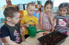 Сегодня дети средней группы посадили лук.