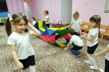 С детьми старшей группы помогли Маше разобрать одежду на летнюю, осеннюю и зимнюю. Индира провела игру "Мяч лови -одежду назови". В парах дети высказались об одежде друг друга.