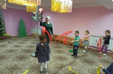 Чтобы уберечь ребенка от несчастных случакв в различных ситуациях, необходимо научить его безопасному поведению. С этой целью в детском саду проходит неделя посвященный правилам дорожного движения и безопасности. Сегодня на занятиях музыки, мы играли в подвижные музыкальные игры, направленные на формирование правильного поведения на дороге. "Шоферы", "Что говорит светофор".