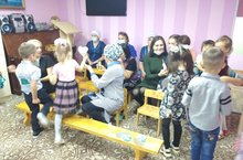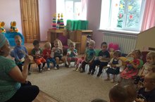 Воспитанники подготовителҗной группы провели развлечение "Сюмбеля". Отгадывали загадки, пели песенки, танөевали с разноөветными листҗями, показали сказку "Репку".