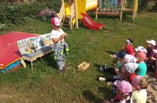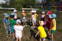Кечкенәләр төркем балалары белән җыр астында биеп, җырлап уйнадык.