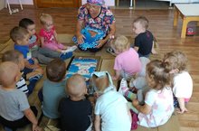 Бүген көнебезне хәрәкәтле уеннарга багышладык. Зур балалар белән "Эссе бәрәңге", "Аучы һәм үрдәкләр" уеннарын искә төшереп уйнадык, кечкенәләр белән "Көн -Төн", "Тупны тот" уеннарын өйрәнеп уйнадык.