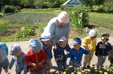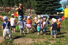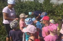 Балаларга хезмәт тәрбиясе бирү өчен шартлар җитәрлек бакчада. Бакча хезмәткәрләренең эшен балалар яратып күзәтәләр, кызыксындырган сорауларына җавап та табалар. Бүген крыжовник җыйган апалар янында булып, бу җимешне ничек кулланырга мөмкинлекне белделәр.