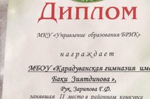 МБГБУ "Бакый Зыятдинов исемендәге Карадуган гимназиясе" урта гомуми белем бирү мәктәпләре арасында "Җәйге сезонга мәктәп территориясен иң яхшы бизәү" район конкурсында II урынны яулады. -