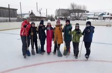 Обучающиеся 5 класса играли на катке в хоккей с мячиком.