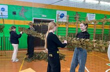 В нашей гимназии патриотическое воспитание подростков является одним из основных направлений всего воспитательного процесса. Как только началась специальная военная операция на Украине, эта тема стала главной и основополагающей. В связи с этим мы проводим различные мероприятия, в том числе и гуманитарного характера. Сейчас волонтёры совместно с Юнармейцами и лидерами Движения Первых плетут маскировочные сети для участников СВО.