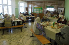 Гимназия ашханәсендә сугыш, тыл ветераннары, сугыш вакытында ятим калган әби-бабайларыбыз хөрмәтенә бәйрәм табыны артында чәй эчертү тантанасы булды. Гимназия укучылары , авыл мәдәнияте хезмәткәрләре концерт куйды.