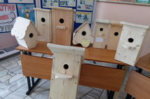 Гимназиябездә “Скворечник”акциясе игълан ителгән иде.Һәр сыйныф әлеге биремгә җылы карап, үз куллары белән ясаган сыерчык ояларын алып килделәр.