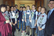 5 октябрь көнне гимназиядә Укытучылар көне уңаеннан 10 сыйныф укучылары һәр укытучыны чәчәкләр , матур теләкләр белән каршы алдылар. Һәр класс матур котлау открыткасы ясап котлау стенасын бизәде.