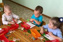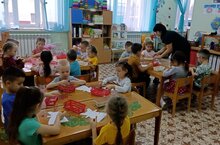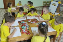 Уртанчылар төркеме балалары кисеп ябыштыру шөгылендә геометрик фигуралар ярдәмендә квадрат читләрен һәм почмакларын бизәргә өйрәнделәр.