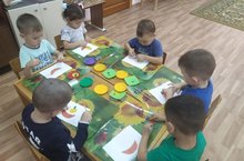 Кечкенәләр төркемендә кисеп ябыштыру эшчәнлеге "Тәлинкәдә җиләк һәм алма" 24.10.2022