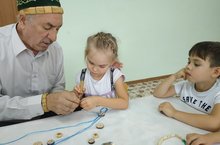 Безнең балалар бакчасы балалары яңадан Норма авылының балта остасы Госман Гомәр улы белән очраштылар. Ул аларга усак агачыннан тасма-тәкыя ясау буенча мастер-класс үткәрде.