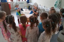 Кечкенәләр төркеме балалары кер юучы һөнәре белән танышуны дәвам иттеләр, белемнәрен ныгыттылар. Үзләре дә бу эштә катнашып карадылар.
