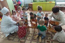 На основе профессионального направления дети первой группы раннего возраста познакомились с профессией младшего воспитателя и сами участвовали в этом процессе.