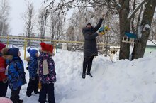 Уртанчылар төркеме №2 балалары табигатьтә булырга бик яраталар. Менә бүген дә алар канатлы дусларын сыйладылар, аларга җимнәр бирделәр.