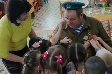 Кечкенәләр төркеме №1 балалары Әфганстан сугышында булып кайткан Хафизов Рифкат Харис улы белән очраштылар. Ул үзенең сугышчан батырлыклары турында балаларга сөйләде.