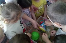 Кечкенәләр төркемендә эзләнү эшчәнлегендә балалар авыр һәм җиңел предметларны су белән тәҗрибә ярдәмендә чагыштырып карадылар.