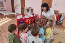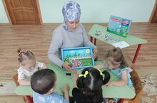 Кече яшьтәгеләр төркемендә "Шалкан" әкияте буенча дидактик әсбапны кулланып, магнитлы курчак театры уйнадылар.