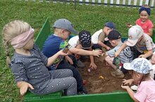 Сегодня в детском саду прошел "День песка". Дети вместе с воспитателем вспомнили правила песочницы. Во время игры у детей развивается мелкая моторика пальцев рук, ловкость и фантазия.