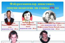 Абыйлары Низаметдинов Әкбәрдән башланган укытучылык эшенә энеләре Нуретдин һәм Азат Галләметдиновлар, тормыш иптәшләре Сания, Наилә апалар,сеңелләре Гөлзидә, энеләре Рәйхан һәм киленнәре Фәридә кушыла. Гомуми педагогик эш стажлары – 176 ел.